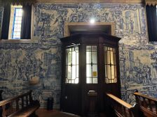 A sacristia tem teto de madeira, soalho e lambris com azulejos seiscentistas de padrão, colocados de forma aleatória. Contém ainda um arcaz em madeira22.